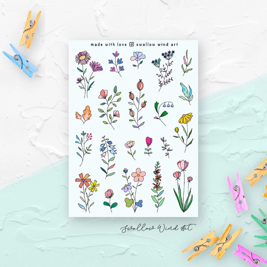 Sticker Sheet - Wildflowers & Leaves